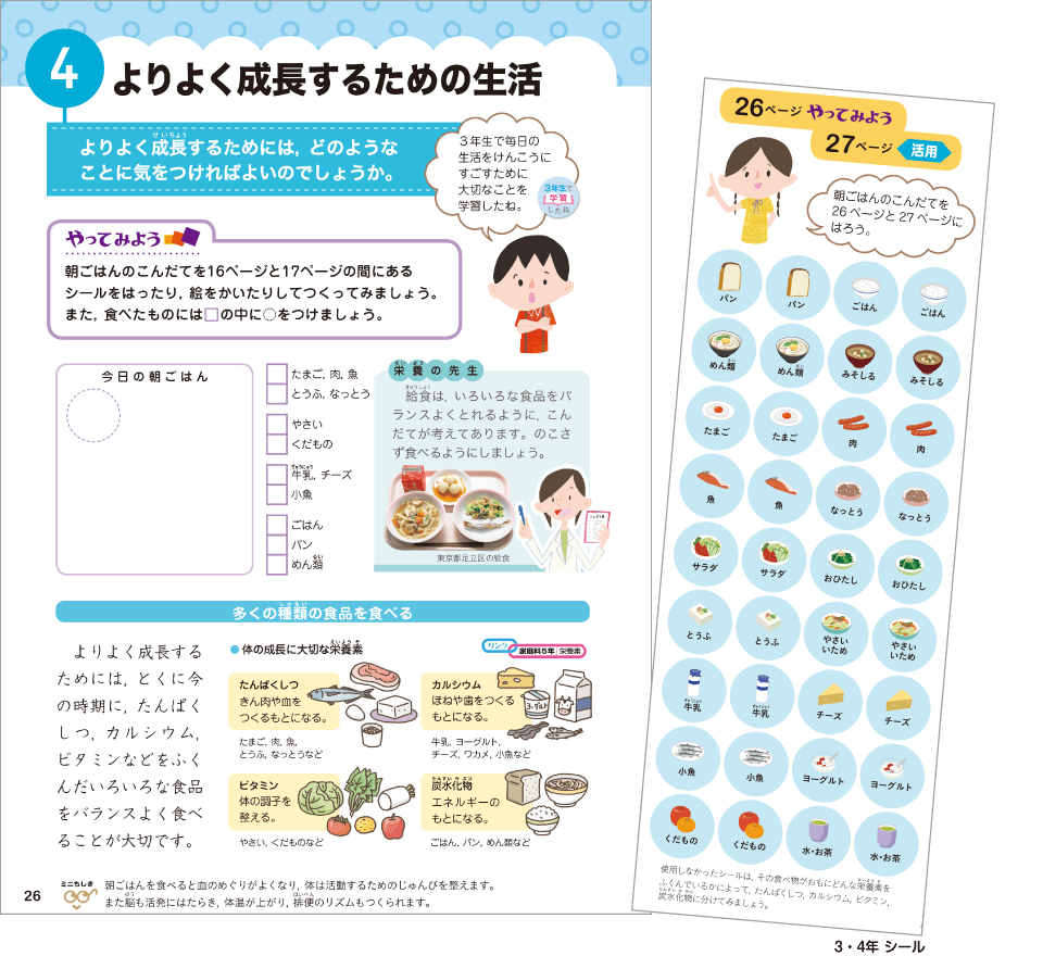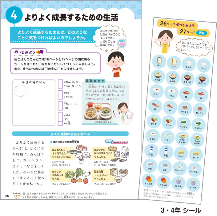 - シールを使ってバランスのよい食事をたのしく学びます。また,自分たちの食生活を見直すきっかけにもなります。