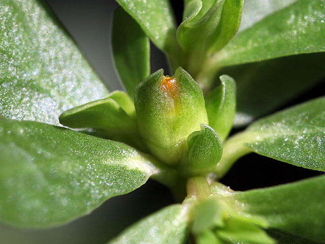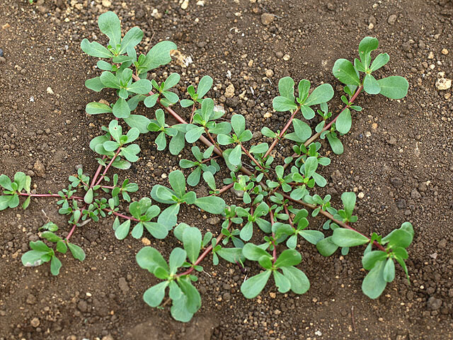夏の焼けるような畑では、作物の生育は休止状態です。それどころか、何とか枯れまいと必死に過ごすものもいます。今年も猛暑で、花壇はもちろん畑も大変な状態となりました。しかし、そんな畑で日照りなどなんのそのと元気に育つたくましい植物もいます。そのひとつがスベリヒユです。水分をたっぷりためこめそうな厚みのある葉と茎で日照りに立ち向かっています。乾ききって白くなった畑の土の上でもしおれずにいる姿を見ると、その強さに「お見事!」と声をかけてあげたくなるほどです。とはいっても、スベリヒユは畑や花壇ではやっかいものです。ちょっと手入れを怠ると、いたるところに芽を出して育ち、除草に手を焼くことになってしまいます。