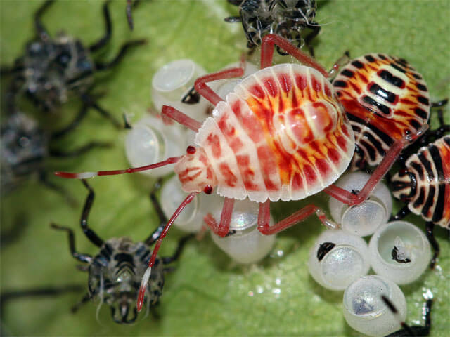 さて今回は、キマダラカメムシの2回目です。育つ順序が少し前後しますが、脱皮して幼虫が2齢になるようすから成虫になるまでの紹介です。
