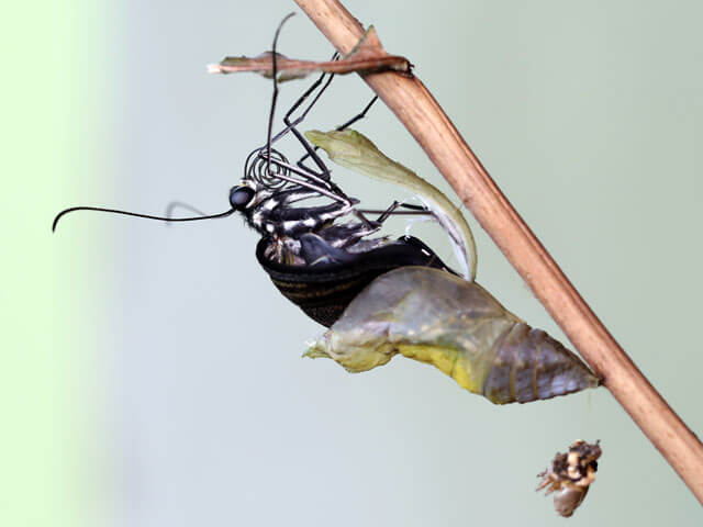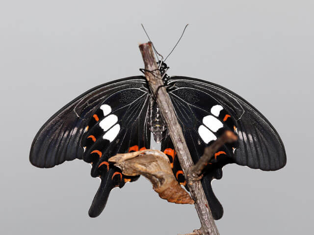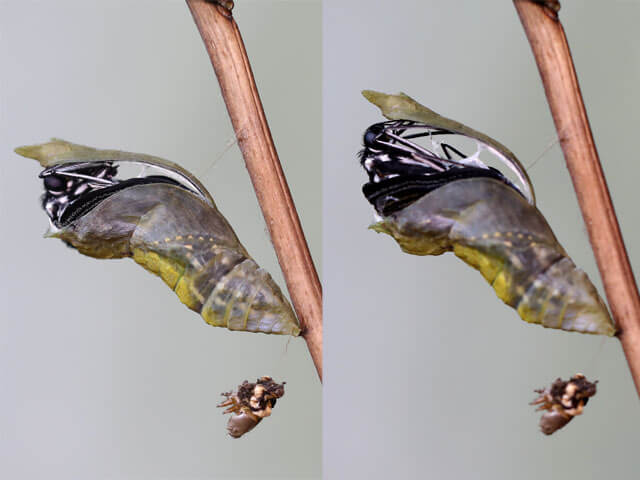 さて今回は、モンキアゲハの3回目。モンキアゲハの最終回となる今回は、蛹が羽化して成虫になるようすを紹介します。
